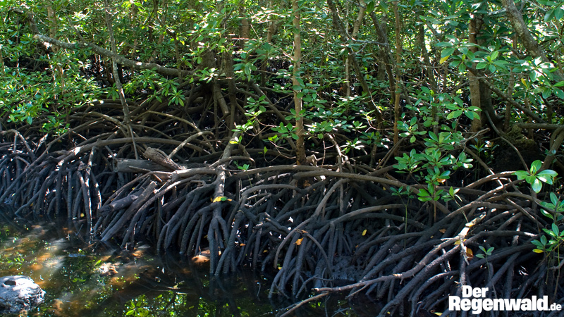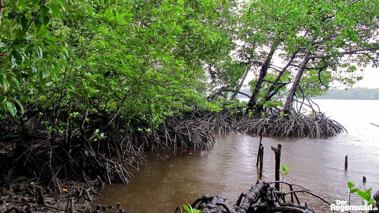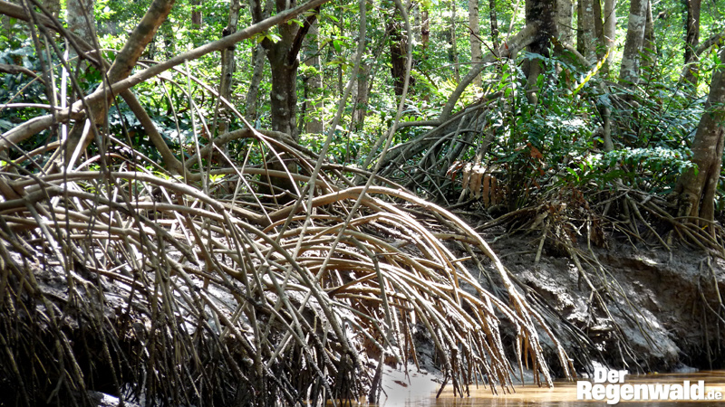 Das vielarmige Stelz- und Atemwurzelwerk fungiert als Fänger des mit den Flüssen herabgespülten