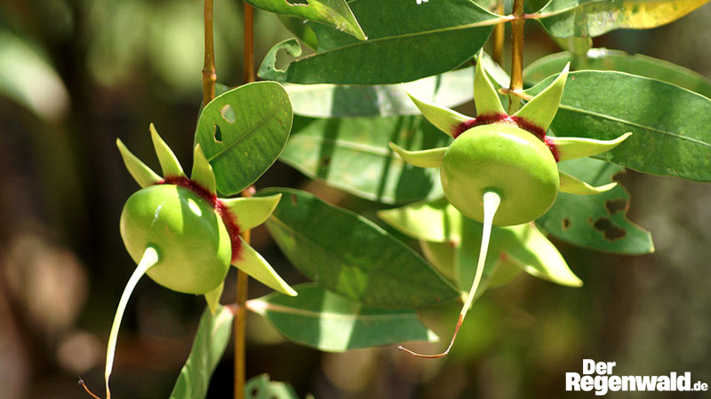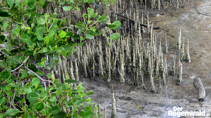 herab und bohrten sich in den Schlick. Auf diese Weise pflanzen sich diese Mangroven selber aus.