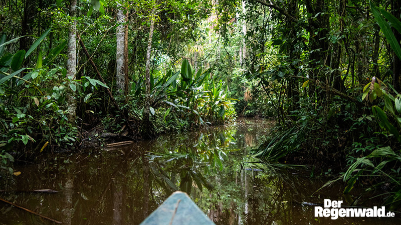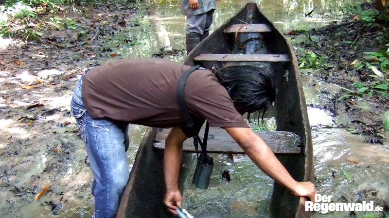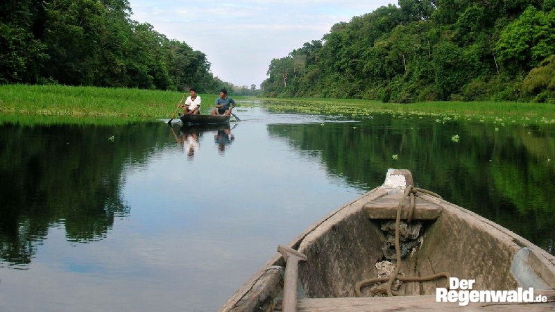 Regenwald-Gewässern. Sehr viel besser eignet sich die Urform des Bootes, der Einbaum. Zudem sind sie
